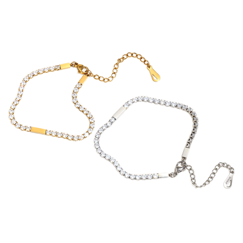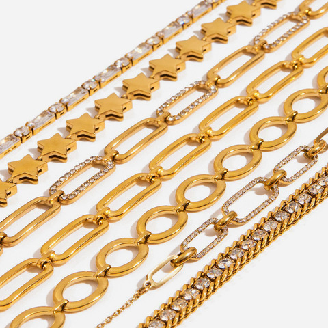 女性用18K金メッキステンレス鋼幾何学的な調整可能なジルコンチェーンブレスレット