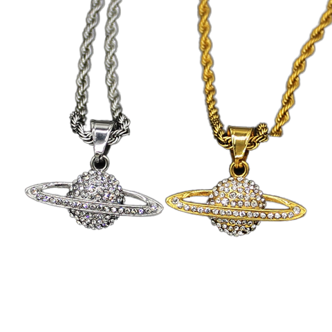 アイスジルコンCZペンダントネックレスHip HopメンズステンレススチールCelestial the Earth