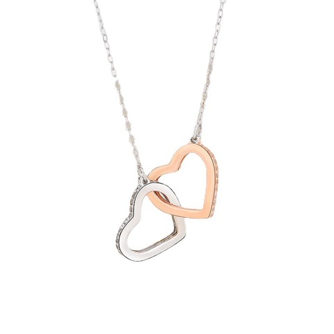 Nuova collana girocollo con clavicola a cuori ad incastro in argento sterling 925 con zirconi cubici