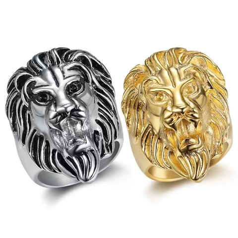 Trendy Mode Sieraden Rvs Punk Leeuw Hoofd Ring Voor Motorrijders