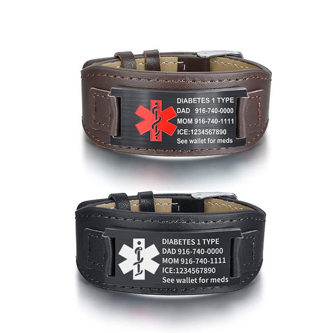 Punk Heren Klassieke Stijl Roestvrij Staal Metalen Plaat Gepersonaliseerd Gegraveerd Logo Echt Lederen Armband
